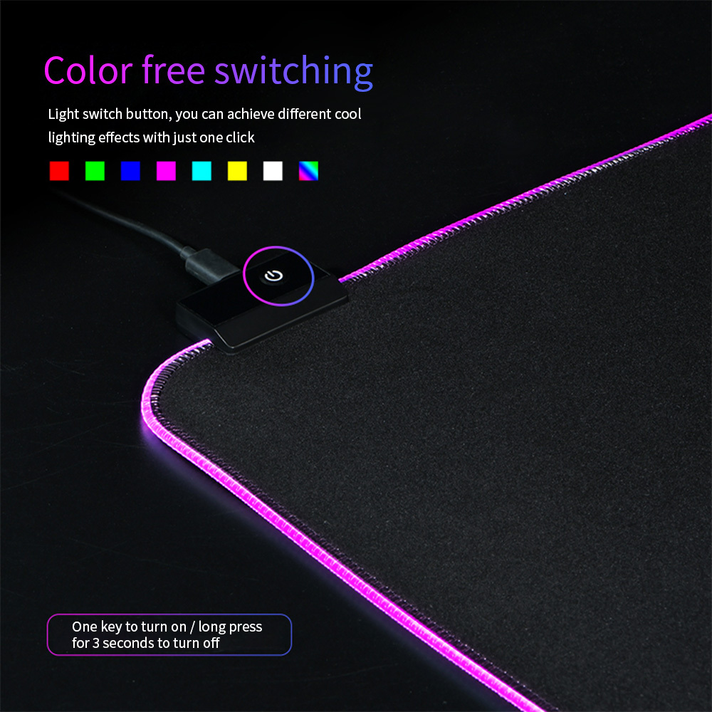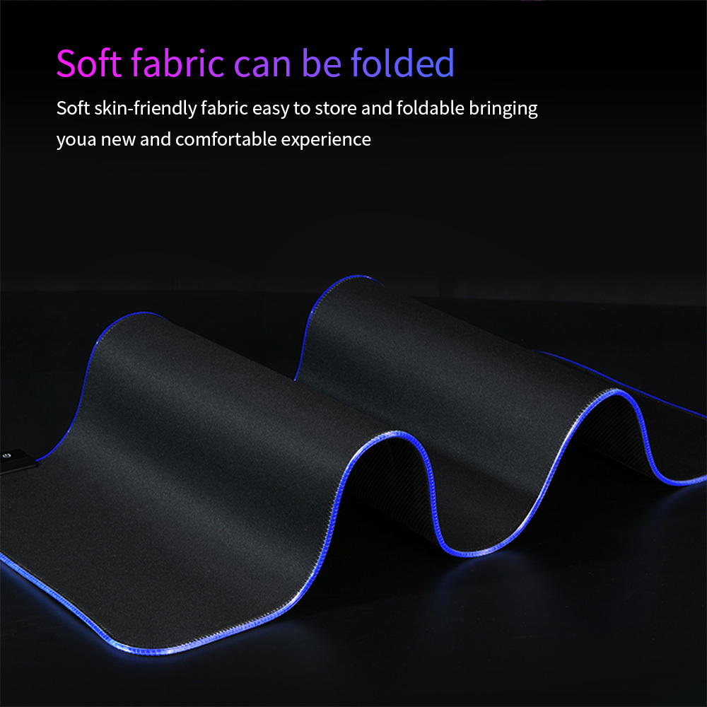 Foldable large mouse pad, Steady Rubber Base, USB powered, Plug & Play, Detachable Cable. Non-slip Natural Rubber Thickening, 7 colors RGB Light, Good water proof performance, Soft microfiber surface optimized for both speed and control. Pixel precise targeting and tracking optimized for all mouse sensitivities and sensors.