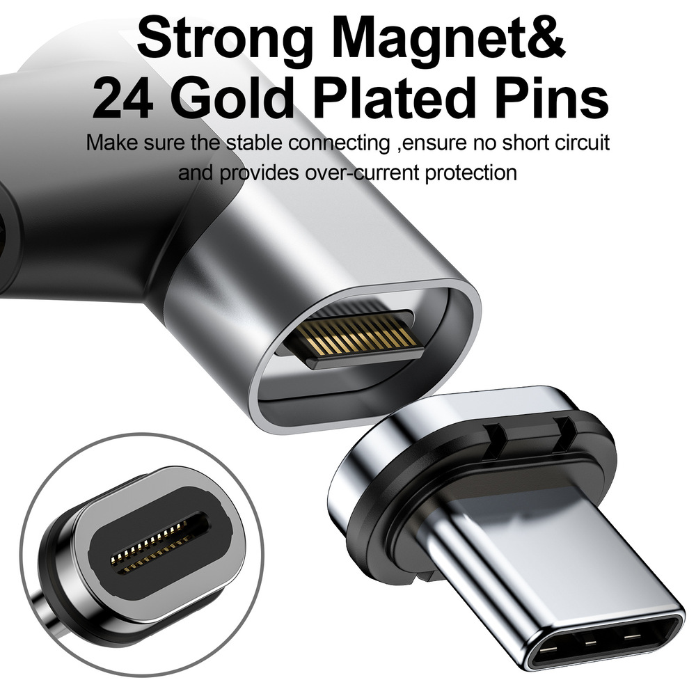 USB Type C Magnetic Adapter for Macbook, Type C Laptop, phones and devices. 100W PD Support and 10Gbps Data Transfer rate. 90 degree angle and 24 pin design (supports thunderbolt 4). USB C 3.1 Fast charging. Small size, can use 2 adapters in one side on Macbook.