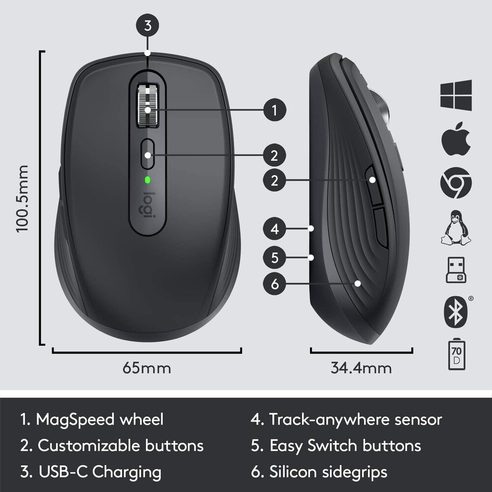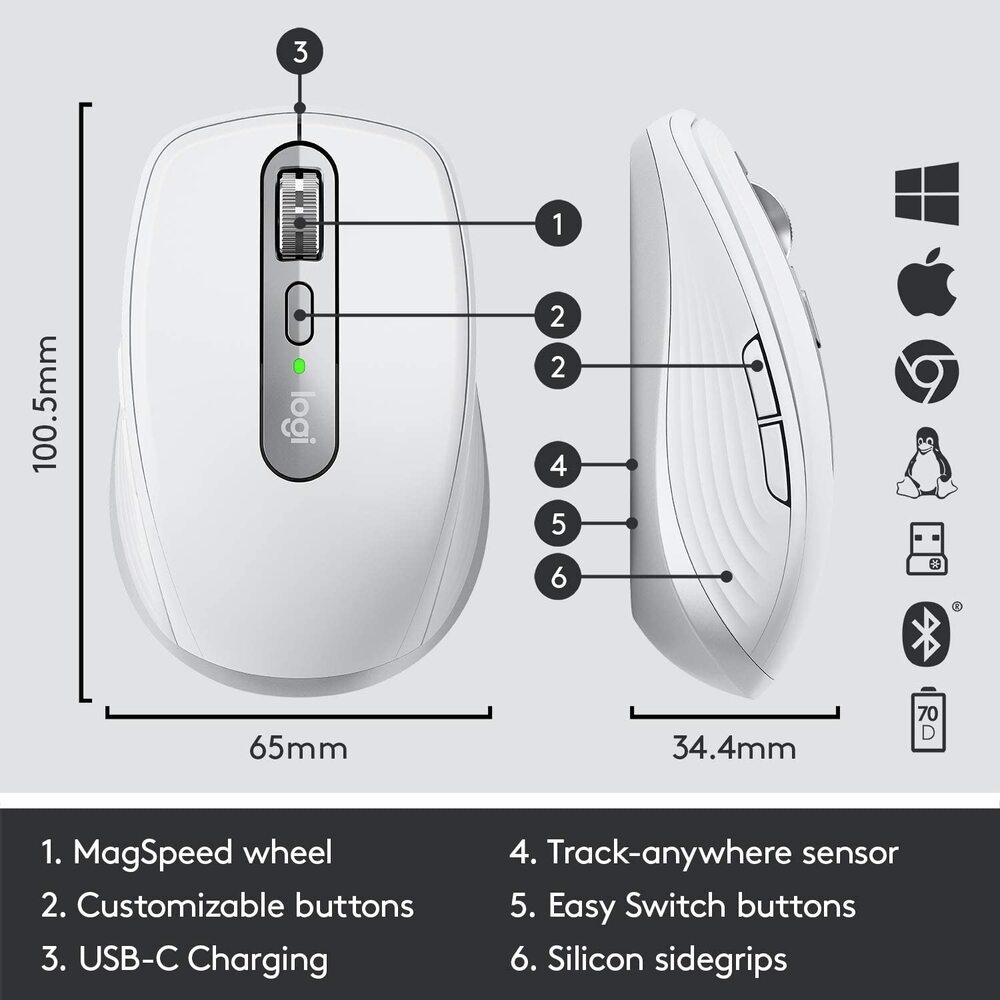 MULTI-DEVICE, MULTI-OS - Connect up to three devices and switch between them at the tap of a button. MX Anywhere 3 works with Windows, macOS, iPadOS, ChromeOS, & Linux.